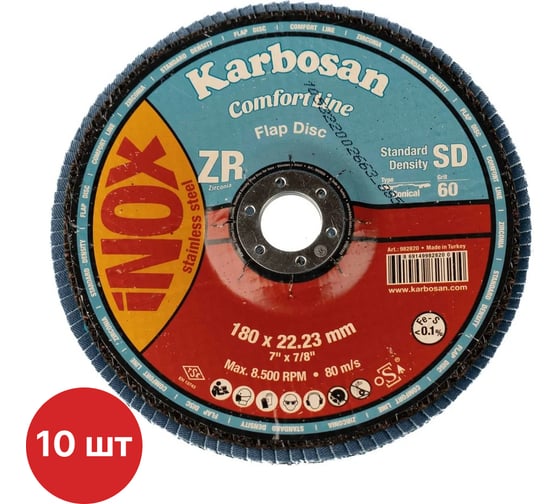 Круг лепестковый КЛТ Karbosan Comfort Line ZR SD Flap Конический 180x22 мм/Р60 INOX (10шт) KAR-982820-10