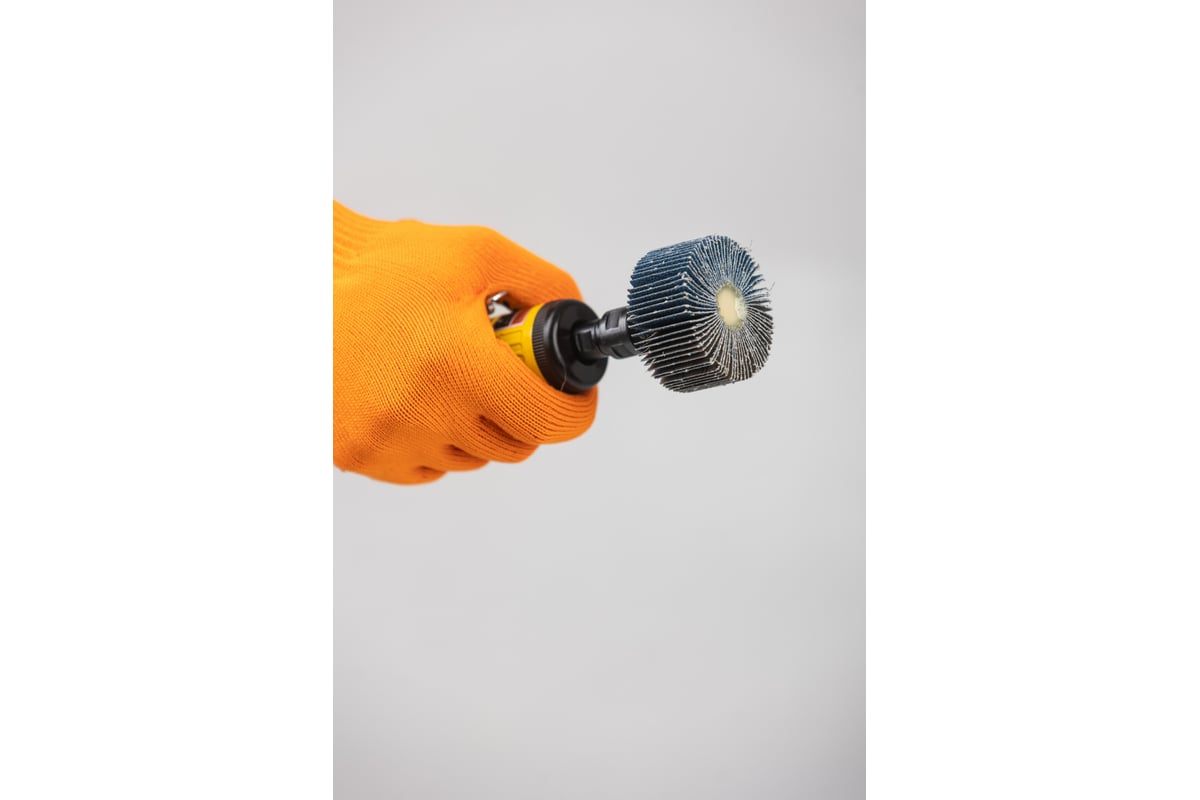 Круг лепестковый на оправке из шлифовальной шкурки 30x30x6 мм, Р40 TOTFLEX 4631165904214 идеально подходит для финишной обработки металла. Используется для обработки как плоских, так криволинейных и внутренних поверхностей с помощью прямой шлифовальной машины или дрели.