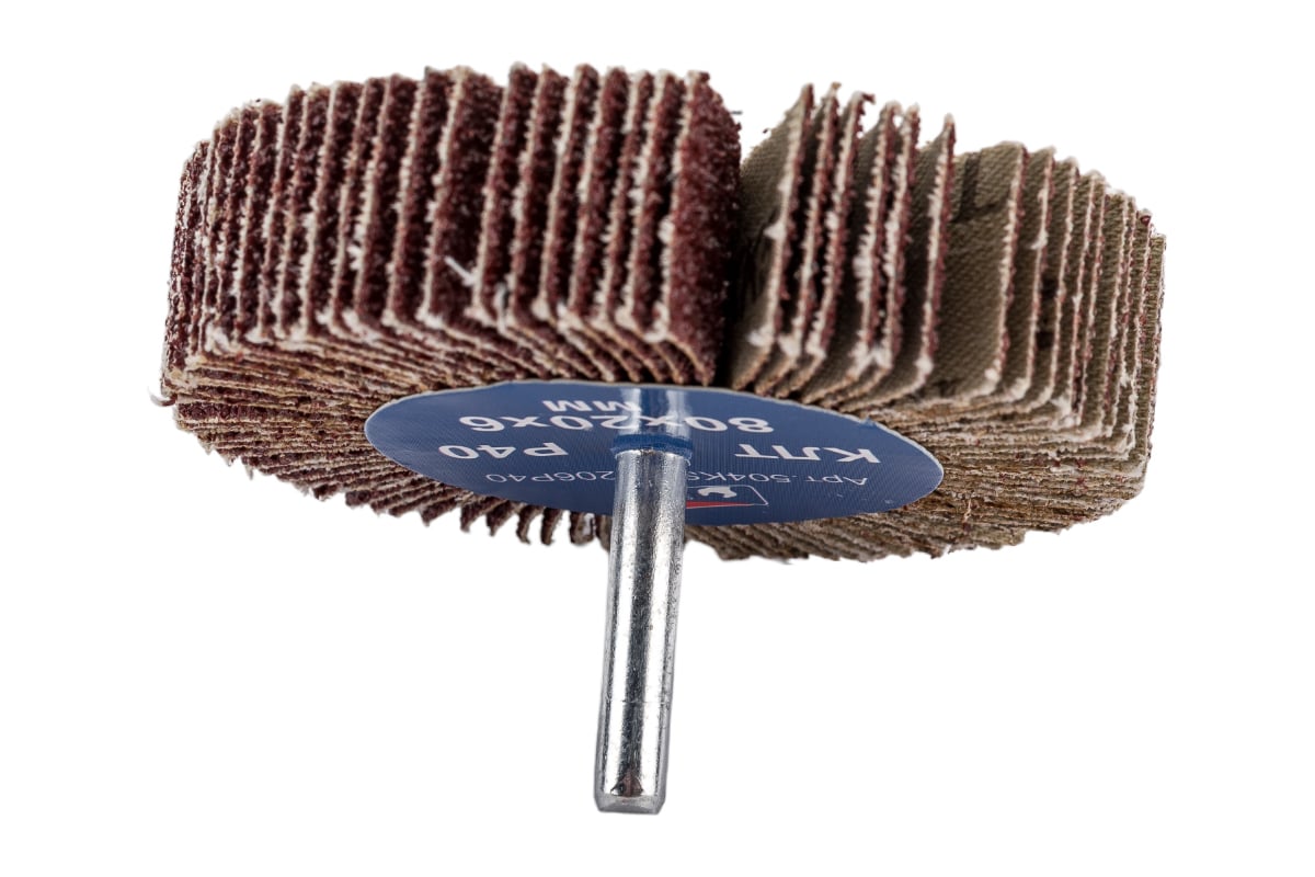 Состоит из лепестков тканевой шлифовальной шкурки (оксид алюминия), которые расположены в виде веера вокруг металлического штыря.
