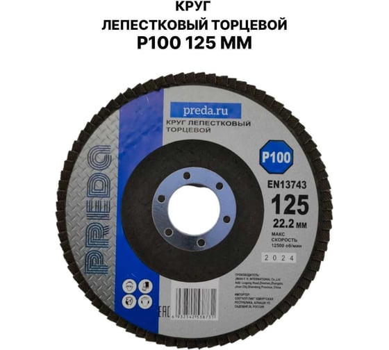 Круг лепестковый торцевой PREDA КЛТ P100 125 мм, 1 шт. KLT100-1