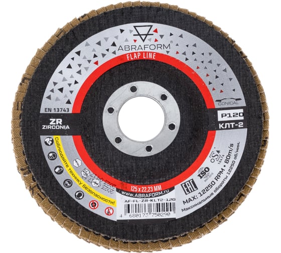 Круг лепестковый торцевой Zirconia от Мастерская Pit_Stop и Доктор дью 125 мм, P120, угловой ABRAFORM DD-FLAP-ZR-120-2