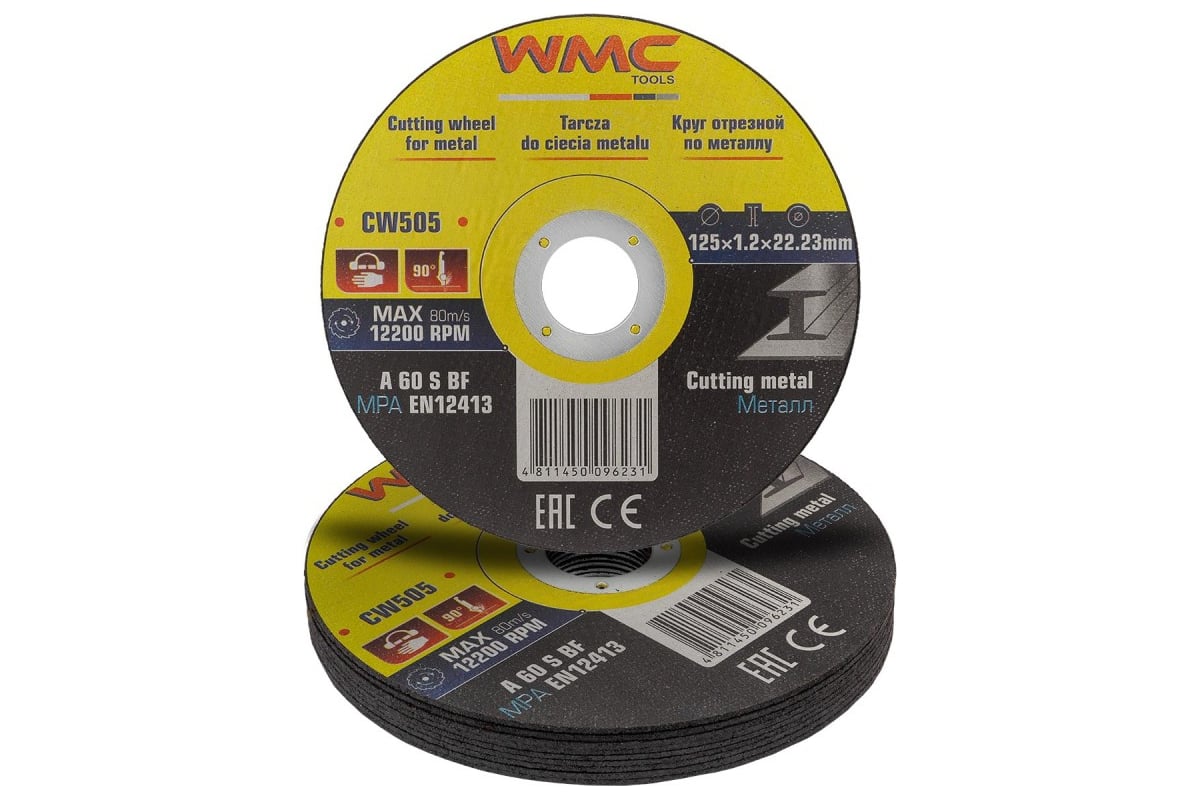 Круг отрезной абразивный 125x1.2x22.2 мм, 10 шт WMC TOOLS WMC-CW505/10шт к-т/(59864)