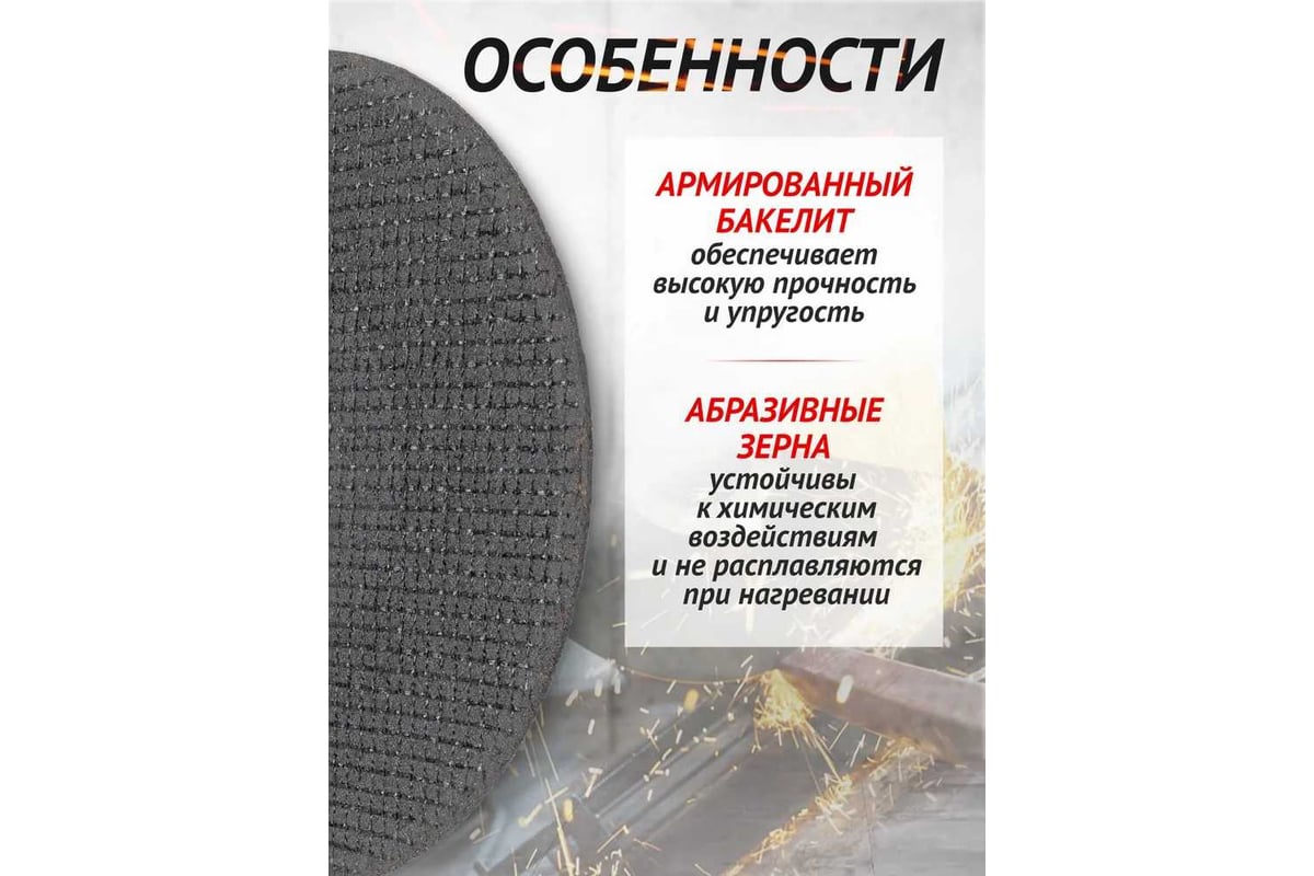 Армированная бакелитовая связка предотвращает разрушение диска при заклинивании.
