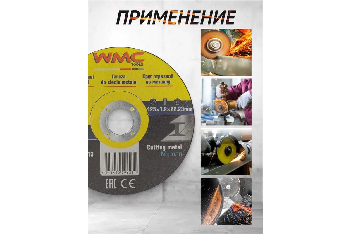 Надёжный и универсальный расходный материал для резки металла и твёрдых материалов. Диски от бренда WMC TOOLS диаметром 125 мм и толщиной 1,2 мм обеспечивают стабильную и безопасную работу при высоких нагрузках. Подходят для большинства угловых шлифмашин с посадочным отверстием 22,2 мм.
