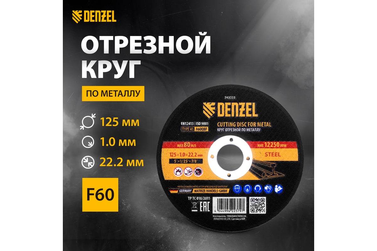 Круг отрезной по металлу 125x1x22.2 мм, A60QBF Denzel 743333