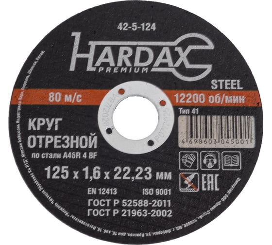 Технические характеристики отрезного круга по металлу Hardax 42-5-124
