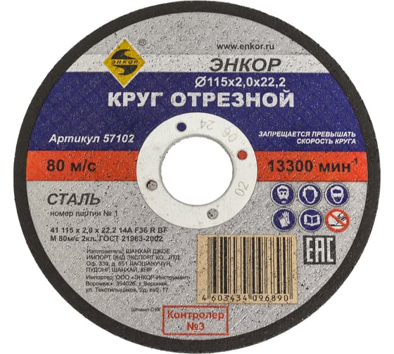 Вопросы и ответы о круге Энкор 115х22,2х2 мм 57102