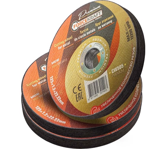 Круг отрезной по металлу Forcekraft 125x1.2x22.2мм(30шт к-т) FK-CW505 PREMIUM[30шт к-т](64273)