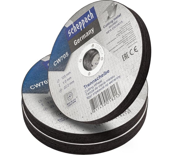Круг отрезной по металлу от бренда Scheppach 125 мм, комплект 30 шт — профессиональное решение для резки и обработки тонкостенных металлических изделий любой формы: труб, листов, профилей и проволоки. Диски подходят для выполнения общих задач металлообработки и совместимы с большинством угловых шлифовальных машин (УШМ) со стандартным посадочным отверстием 22.2 мм.