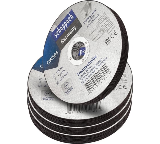 Круг отрезной по металлу 125х1,2х22,2 мм от бренда Scheppach– профессиональный комплект отрезных дисков, предназначенных для точного и быстрого реза металлических заготовок. Диски выполнены из абразива электрокорунд, что обеспечивает высокую эффективность при работе с различными видами стали. Толщина 1,2 мм позволяет выполнять аккуратный и чистый рез, а диаметр 125 мм делает их совместимыми с большинством угловых шлифовальных машин.