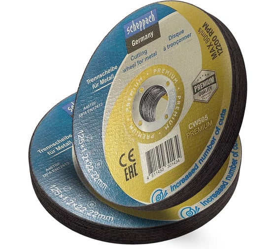 Круг отрезной по металлу Scheppach 125x1.2x22.2мм(20шт к-т) Sch-CW505 PREMIUM[20шт к-т](64287)