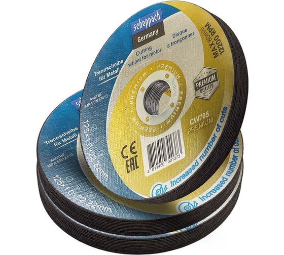 Круг отрезной по металлу Scheppach 125x1x22.2мм(30шт к-т) Sch-CW705 PREMIUM[30шт к-т](64258)