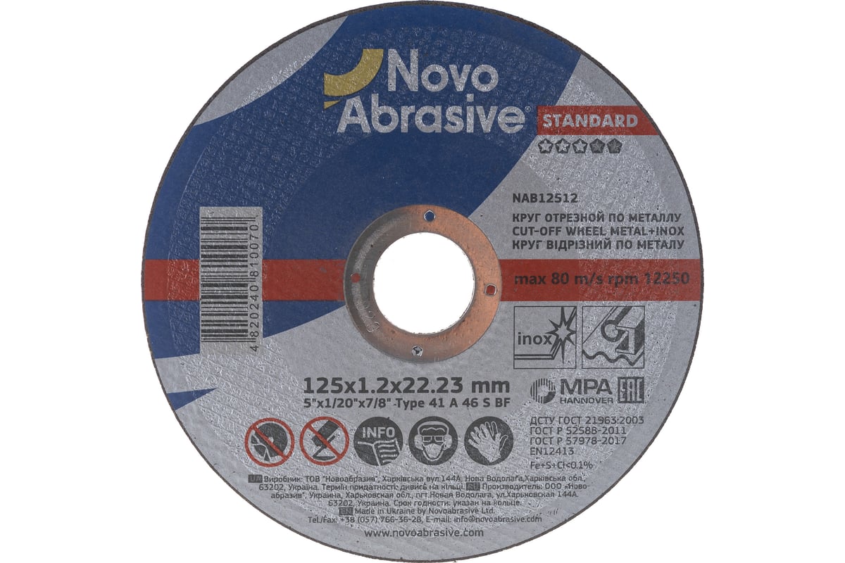 Круг отрезной по металлу Standard (125x1.2x22.23 мм) NovoAbrasive NAB12512