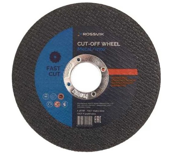 Круг отрезной по металлу ROSSVIK применяется для резки черных металлов и нержавеющей стали.