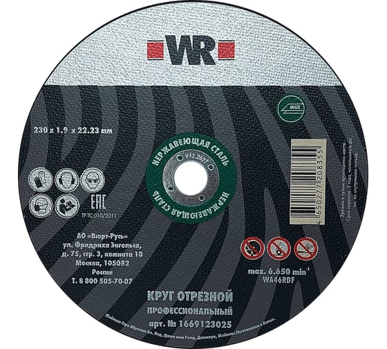 Круг отрезной по нержавеющей стали Wurth 230х1.9х22.2 1669123025092 1