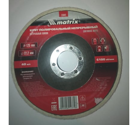 Отзывы о круге полировальном непрерывном из натурального войлока 125х22,2 мм MATRIX 75942