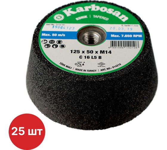Круг шлифовальный чашечный конический Karbosan SC 125x50xM14 (упаковка 25 шт) KAR-914210-25