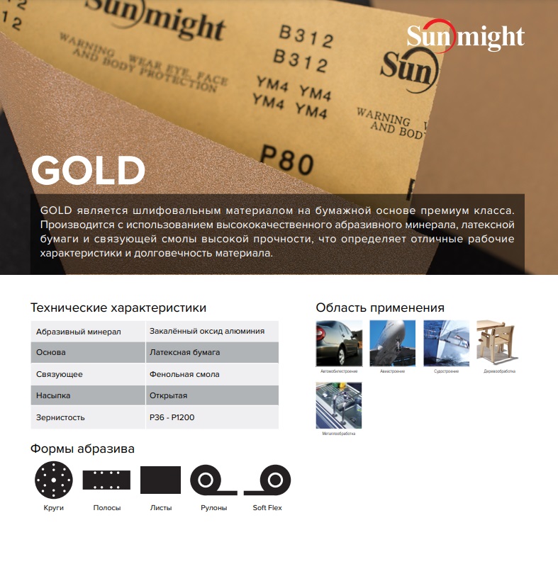 Представляет собой абразивный материал на бумажной основе "GOLD". Имеет стеаратовое покрытие, за счет которого увеличивается срок службы.