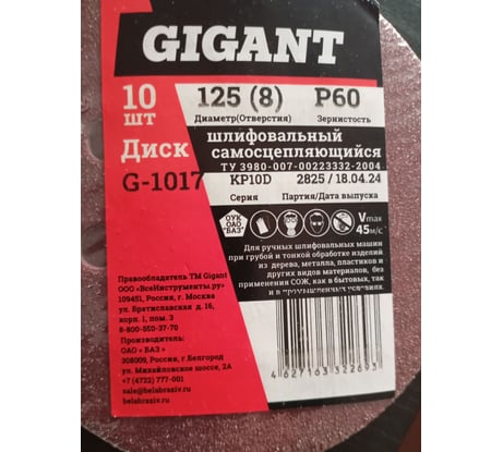 Отзывы о круге шлифовальном на липучке по дереву/металлу 10 шт. (125 мм; P100; 8 отверстий) Gigant G-1019