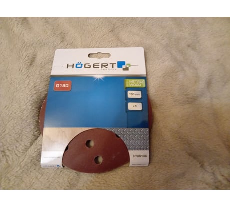 Круг шлифовальный на липучке с отверствиями 150 мм, 5 шт, G100 HOEGERT TECHNIK HT8D133
