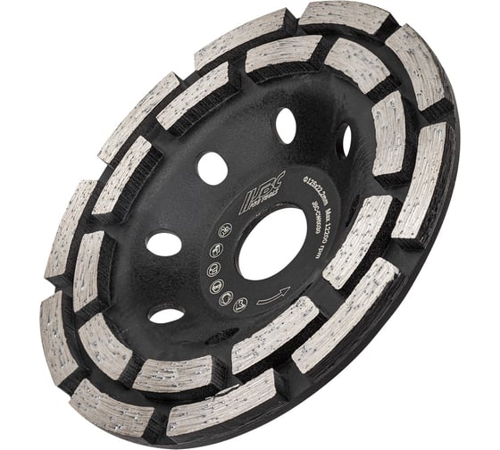 Алмазный зачистной круг от бренда JBC диаметром 125 мм с посадочным отверстием 22,2 мм предназначен для интенсивного шлифования, выравнивания и очистки поверхностей из бетона, камня, кирпича и других твёрдых материалов. Двухрядная конструкция (double row diamond cup) обеспечивает повышенную производительность и равномерное удаление материала. Круг рассчитан на работу с угловыми шлифовальными машинами при максимальной скорости вращения до 12200 об/мин (80 м/с), что делает его идеальным для профессионального использования в строительстве, ремонте и отделочных работах.