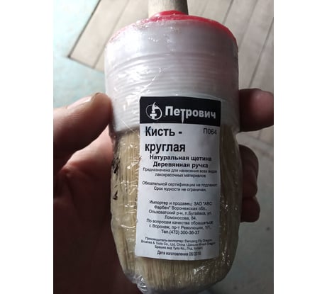 Круглая кисть Петрович натуральная щетина, деревянная ручка, диаметр 60 мм 4100000179