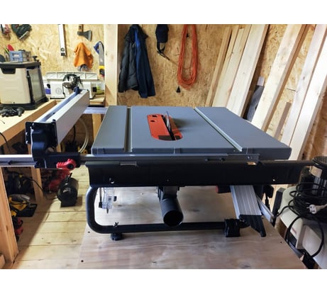 Взял для хобби, не работал, пишу о первых впечатления от самого станка. Стол почти ровный, есть впадина у вкладыша ~0.4мм. В этом месте снизу вырезаны рёбра жёсткости для увеличения вылета диска. При желании можно пожертвовать 5-10мм глубины пропила, заколхозить там стальную пластину и убрать впадину. Лично я забил на это. Диск с завода выставлен и в паралель и по углам, не ожидал. Сразу заменил стоковый диск. Биения заметного нет. На краю вкладыша криво наклеены вставки. Расклин перещёлкивается хорошо. Прозрачный щиток на нём болтается, наверное лучше вообще не ставить. Упор хлипковат, но прямой. Ездит по двум напрявляйкам, стопорится сразу с обоих сторон одним рычагом. Это гуд. Параллельность т-треку и диску есть, прямого угла к столу нет. Механизм подъёма диска в самом нижнем положении подзаедает, дальше легко идёт. Фиксации нет, надеюсь не будет уходить при работе. Наклон диска ручками, за штурвал подъёма, с фиксацией) Салазка транспортира-каретки люфтит в т-треке, не для точных резов. Плавный пуск есть, тормоза нет. Работает громко, но не чересчур. Сам станок лёгкий. Это хорошо)можно таскать одному). Это плохо(для работы лучше прикрутить к основанию). В целом норм за свои деньги, твёрдая четвёрка.