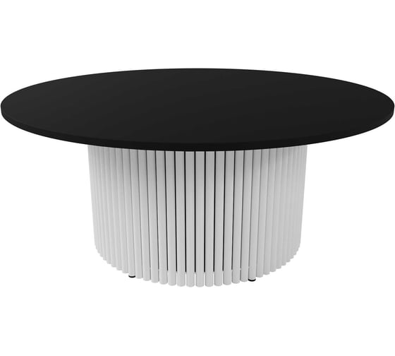 Круглый журнальный стол с металлическим подстольем GENGLASS 600х600 мм, TRUBIS Wood, белое подстолье и чёрная столешница 100 см GGT-03-3-2-М-100