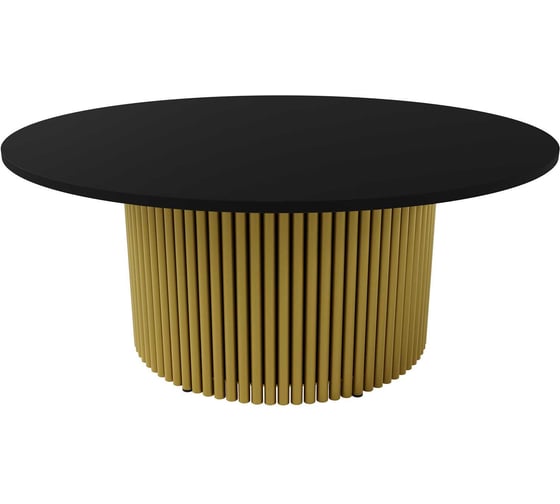 Круглый журнальный стол с металлическим подстольем GENGLASS 600х600 мм, TRUBIS Wood, золотое подстолье и чёрная столешница 100 см GGT-03-1-2-М-100