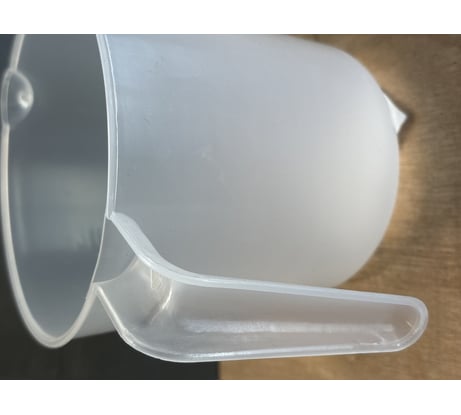 Ужасный "носик", вода разливается во все стороны. Деления светлые, если наливаешь воду - ничего не видно, надо побольше света. Из-за того что стакан широкий, деления очень близко расположены друг к другу, чтобы точно отмерить, надо постараться. Данный мерный стакан Не рекомендую к покупке.