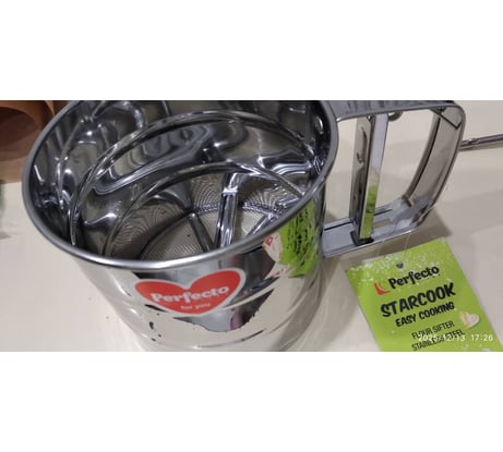 Кружка-сито PERFECTO LINEA Starcook 50-095105 предназначена для просеивания муки, сахарной пудры, манки, какао и других мелких сыпучих продуктов.