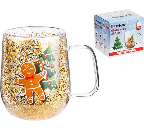 Кружка стеклянная с двойными стенками PERFECTO LINEA Christmas-2 380 мл (30-380261)дольше сохраняет температуру напитка. Горячее будет долго не остывать, а холодные напитки, напротив, не будут становится теплыми. Кружка не обжигает руки и не деформирует поверхности. Такие способности придают этому стакану двойные стенки и прослойка воздуха, находящаяся между ними. Кружка имеет внутренние стенки, в которых размещены блестки, которые создают великолепный визуальный эффект и придают особый шарм вашему напитку. Боросиликатное стекло остается блестящим всегда, ведь оно не подвержено царапинам.