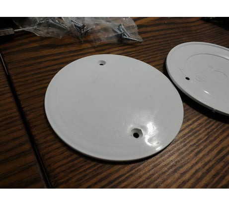 REXANT 28-3049 D74mm (13руб) и ЭРА D68mm Б0039188 (10руб) абсолютно идентичны, явно делаются на одном заводе и из одной пресс-формы. Имеют кантик внутри и глянцевую поверхность с обеих сторон. Хорошо подойдут для закрытия подрозетника во время ремонта, т.к. не сильно выступают за габариты подрозетника по диаметру. Полимер-Фарм D83mm 4687202467051 (10руб) гладкая и матовая с обеих сторон, более широкая и отлично подойдет для закрытия подрозетника уже на чистовом этапе, когда надо прикрыть и стык с обоями\краской
