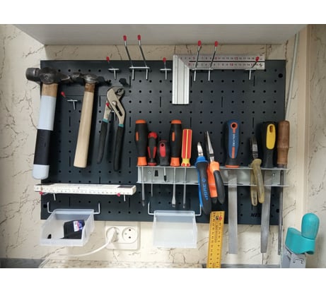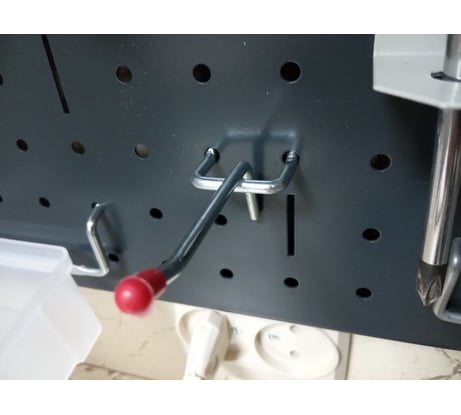 Если у вас инструмент будет висеть за верстаком на расстоянии вытянутой руки, то торчащие штырьки и крючки - это безопасно. Но если будете крутиться постоянно прямо рядом с перфпанелью, то красные пластмасски на концах крепежа помогут вам реально не остаться без глаза. За это спасибо. В остальном - нормальный крепеж. По акции можно брать.