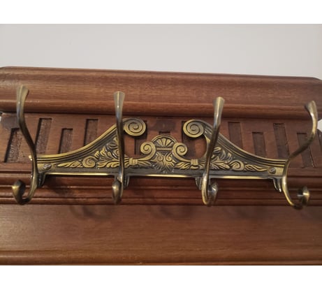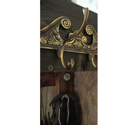 Давно облизывался на эту вешалку, а тут еще и скидка. Были сомнения изначально по поводу материала изготовления, но купив, счистил сзади лак и да - латунь. Крючки не вылиты вместе с основой, а приклепаны. Хорошо, крепко приклепаны. Вешалка лакированная.