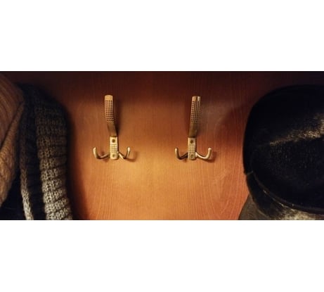 В отзывах пишут про короткие саморезы. Во-первых, тут не саморезы, а шурупы. Во-вторых, я не могу сказать, что они критично короткие. Уже готов был заменить на свои, но с удивлением обнаружил, что они длиннее тех, что были у меня раньше. Но проблема предыдущих крючков была не в коротких шурупах, а в том, что обломился верхний рожок. И даже такие держали нормально. Поэтому менять ничего не стал, лишь рассверлил отверстие (предыдущие шурупы были ещё и меньше диаметром). В остальном всё отлично. Жалею, что не успел сфотографировать шуруп в изделии до монтажа, чтобы измерить, насколько метиз выступает. Но даже если вы хотите заменить комплектные шурупы на увеличенные, то не вижу большой проблемы — цена им считанные рубли. Расстояние между центрами отверстий под крепления 30...32 мм.