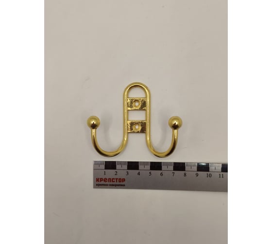 Крючок настенный Крепстор №1002 двойной фигурный, золото, Пакет 4 шт. 4665317041618