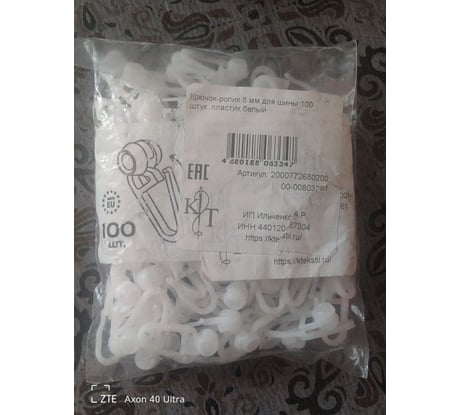 Крючок-ролик Костромской текстиль 8 мм, для шины, 100 шт., пластик белый 00-00803261