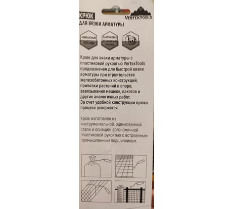 Отзывы о крюке для вязки арматуры vertextools с пластмассовой ручкой 1818-01