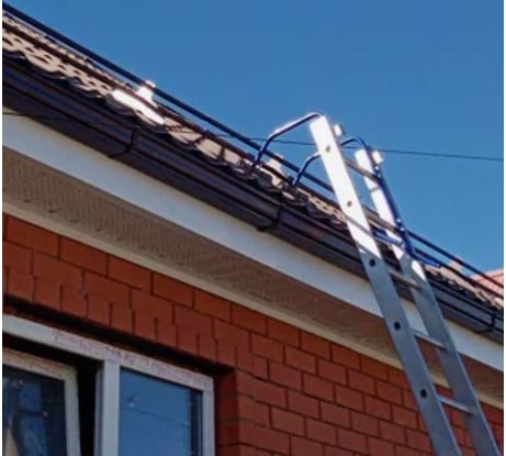 Использовал при монтаже водостока. Крюк надёжно фиксирует лестницу, даже на крутом скате. Металл не гнётся, краска не слезает. Очень продуманная конструкция — видно, что делали для людей