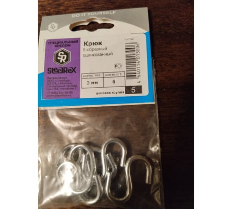 Отзывы о крюке S STEELREX цинк, 3 мм, упаковка 6 шт. 0509003000P300000610
