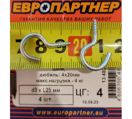 Сопутствующие товары для крюка-шурупа ЕВРОПАРТНЕР d3хL25 мм 4 шт. 13 4834 1