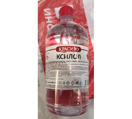 Ксилол Красиво (1 л/0,68 кг) 4631152351533предназначен для разбавления красок, лаков, клеев, мастик, шпатлевок и грунтовок, имеющих маркировку БТ, МЛ, МС, ПФ, ГФ, ФЛ. СОСТАВ: ксилол нефтяной. СПОСОБ ПРИМЕНЕНИЯ: добавлять небольшими порциями к лакокрасочным материалам при перемешивании до нужной консистенции, в соответствии с инструкцией к применению ЛКМ. Огнеопасно! Токсично! Вредно при контакте с кожей! МЕРЫ ПРЕДОСТОРОЖНОСТИ: работать на открытом воздухе или в хорошо проветриваемом помещении с использованием средств защиты органов дыхания, в плотных резиновых перчатках и очках. При попадании на кожу или в глаза, промыть большим количеством теплой воды. При разливе собрать ветошью, затем промыть большим количеством воды. ВНИМАНИЕ: не сливать в канализацию и водоемы. Тару с остатками продукта плотно закрыть и утилизировать в организованные места сбора бытовых отходов. ХРАНЕНИЕ: хранить в плотно закрытой таре, вдали от нагревательных приборов отопления, предохранять от прямых солнечных лучей.
