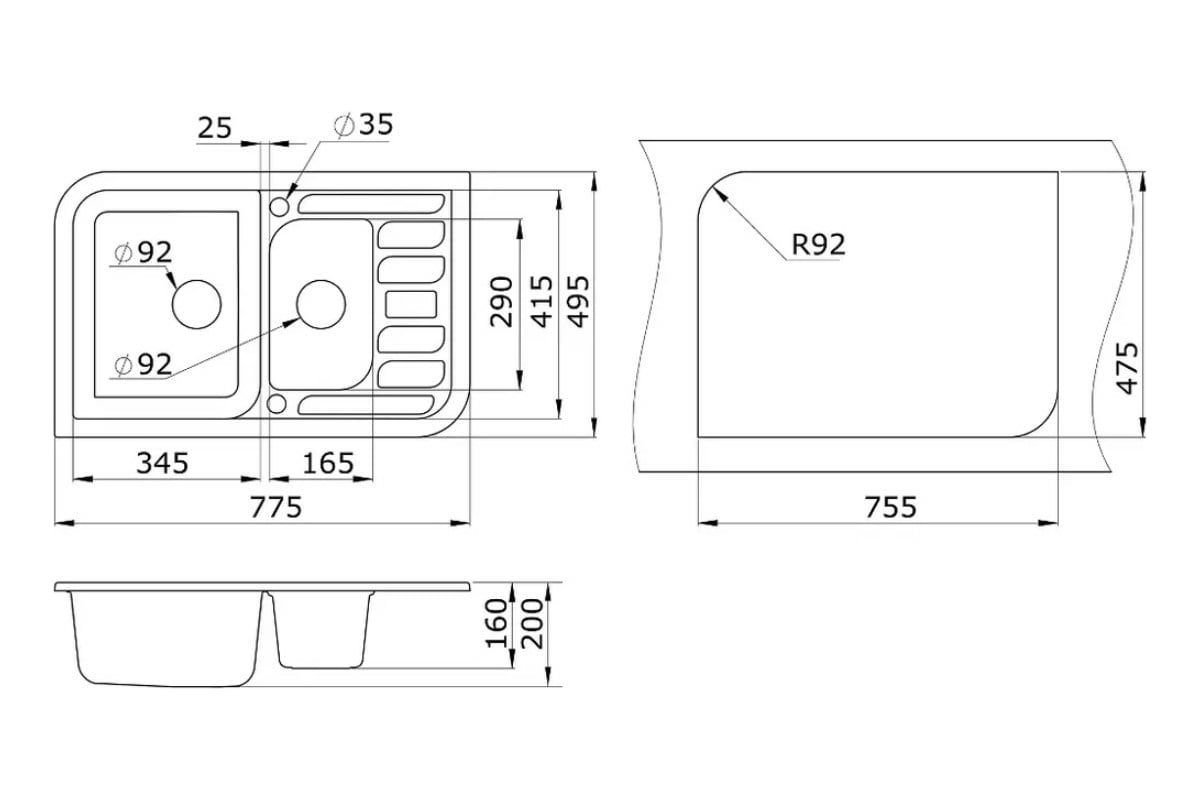 Кухонная мойка GRANULA кварцевая, базальт, оборачиваемая, 775x495 мм., базальт GR-7803 базальт имеет уникальный дизайн с плавными округлыми линиями. При этом она весьма функциональна благодаря наличию дополнительной чаши и большого крыла.