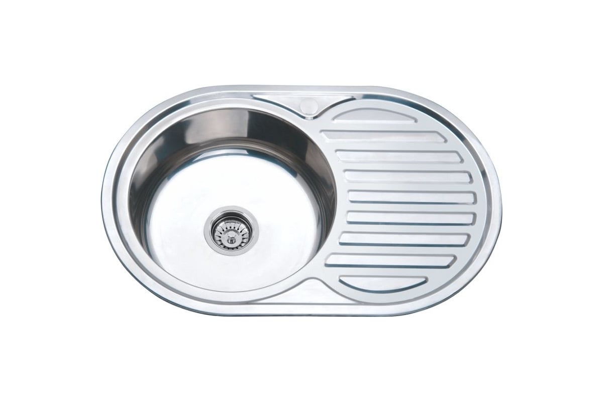 Врезная мойка для кухни из нержавеющей стали РМС с левым крылом, выполнена в стандартной круглой форме основной чаши, что позволяет удачно вписать модель в кухонный гарнитур.