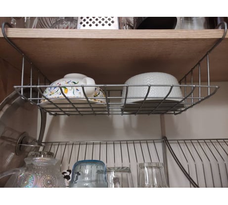 Такая полка-корзина пригодится для хранения различных кухонных или других принадлежностей, которые всегда будут под рукой. Удобное решение для эффективного использования пространства, сэкономит место в шкафу на кухне, кладовой или в гардеробе.