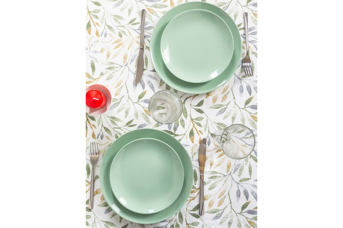 Скатерть для оформления стола выполняет декоративную функцию, создает гармоничную атмосферу в столовой зоне, она подчеркнет безупречный стиль благодаря качеству исполнения и авторской расцветке. Также скатерть защищает стол от загрязнений и повреждений и смягчает звук столовых приборов от соприкосновения со столешницей.