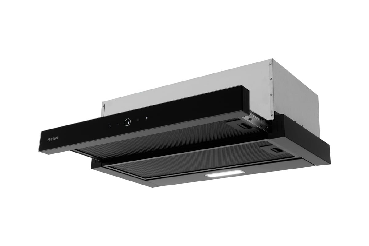 Кухонная вытяжка Hietzel CHT 6001T BL - это встраиваемая телескопическая вытяжка с выдвижной панелью-слайдером и стеклянной лицевой панелью. Ее стильный дизайн и черный цвет придают кухне элегантность и современность.