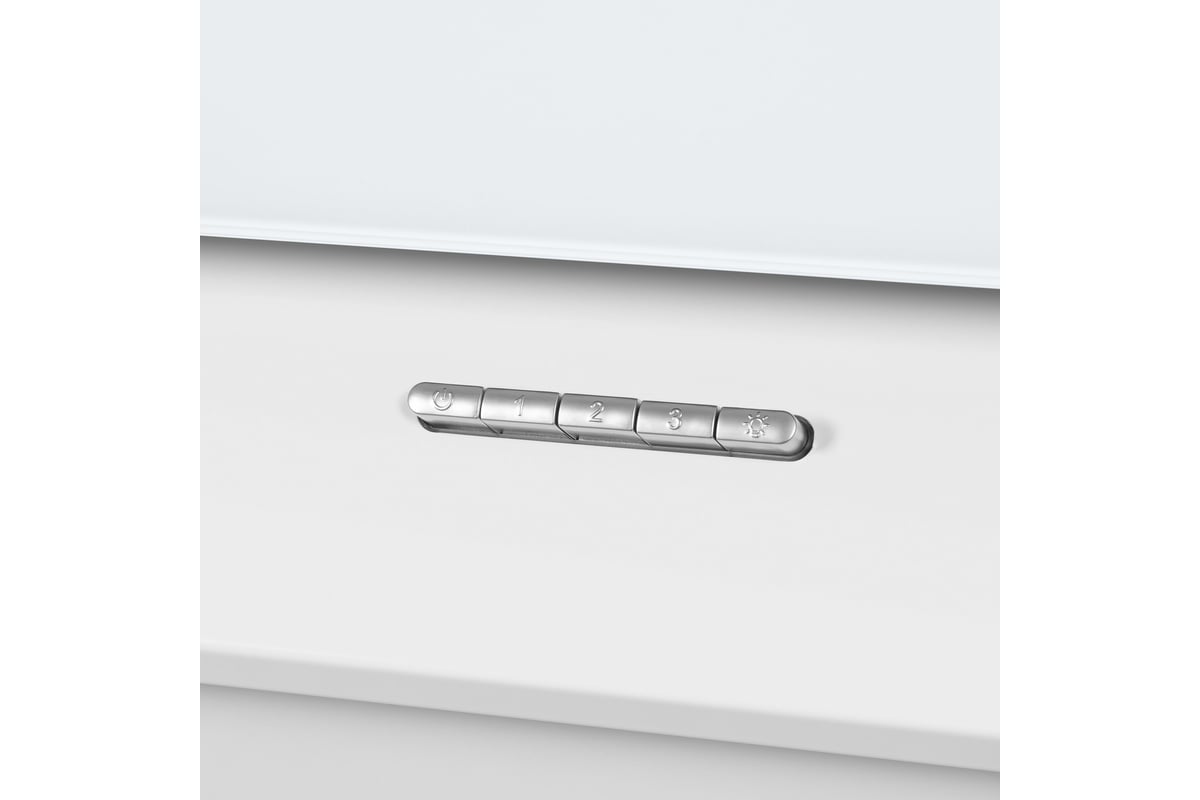 Удобная система управления На фронтальной панели вытяжки HOMSair BELL 50 White находятся кнопки для управления скоростями и режимами. |