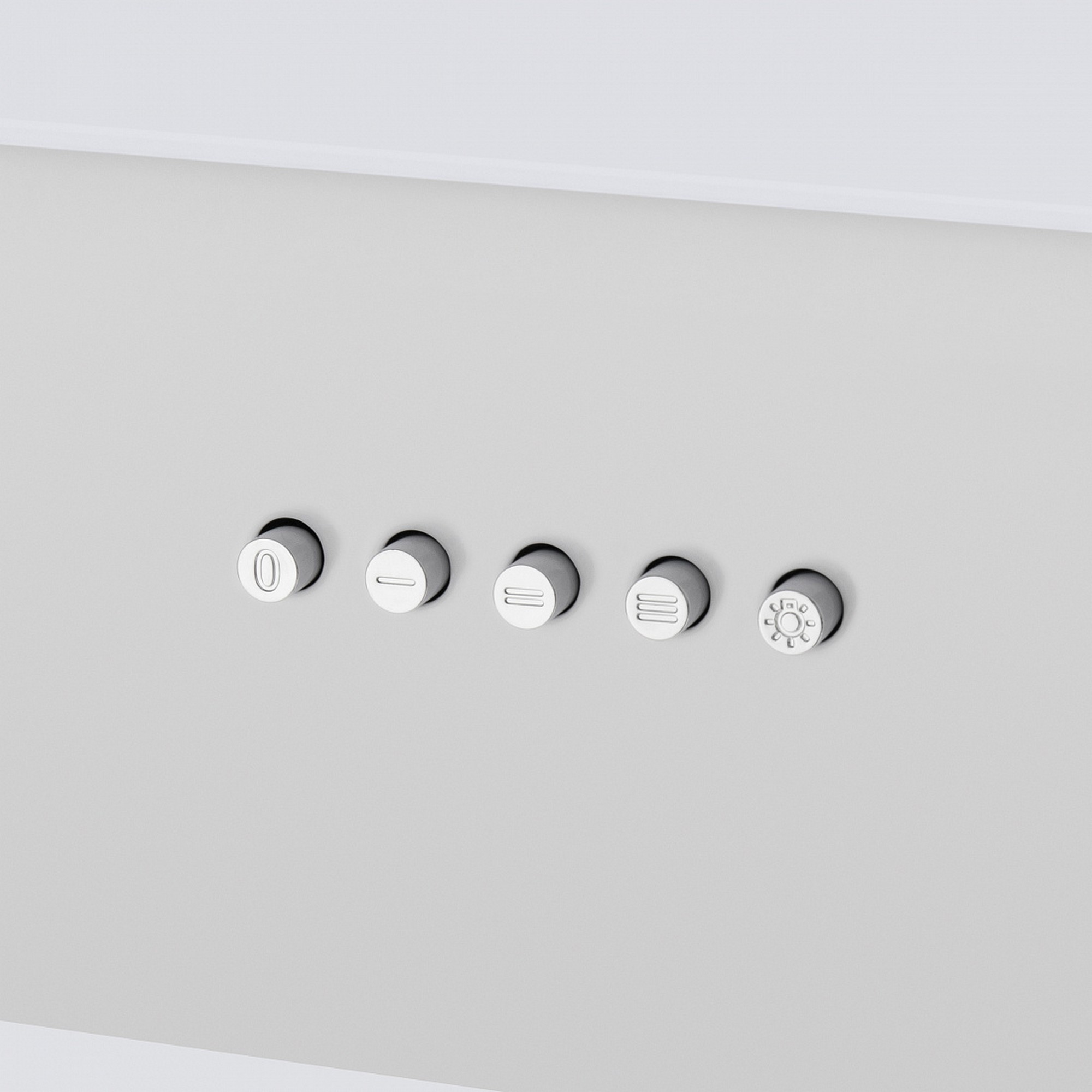Практичная система управления На фронтальной панели вытяжки MAUNFELD CASCADA PUSH 60 Glass White находится надежный кнопочный механизм для управления скоростями. |
